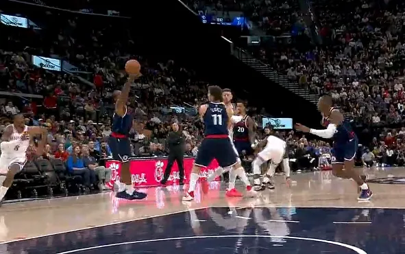 第三节比赛中,多尔特倒地救球,哈滕脑后妙传助攻杰威上篮打进。